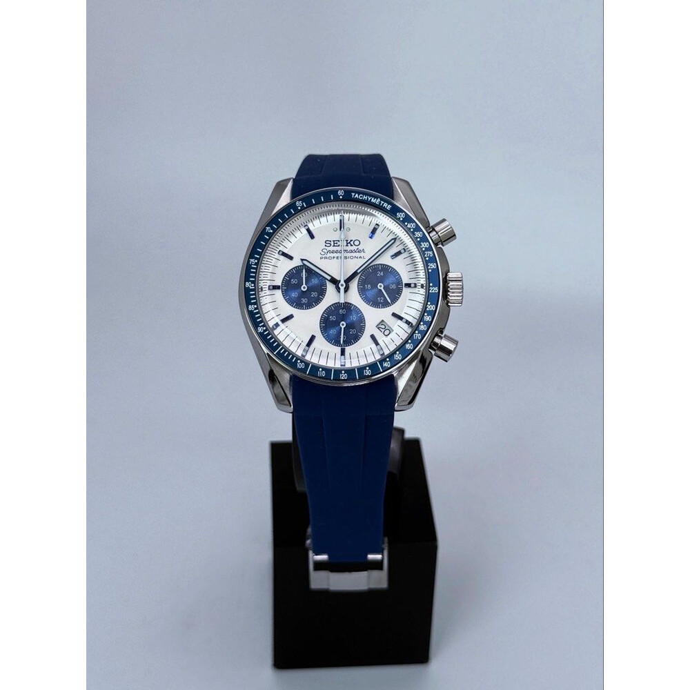 Product Code: Custom Seiko Mod Blue Panda Speedmaster on Rubber Strap 40mm